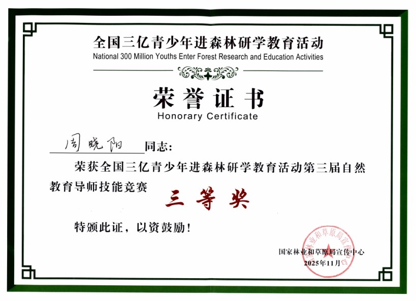 本次“全國三億青少年進森林研學(xué)教育活動第三屆自然教育導(dǎo)師技能競賽”的成功舉辦,具有深遠的意義?!叭珖齼|青少年進森林”研學(xué)教育活動是引導(dǎo)廣大青少年親近自然、了解自然、熱愛自然的重要載體。自然教育導(dǎo)師作為研學(xué)教育活動的一線實施者,其能力水平直接關(guān)系到研學(xué)教育的質(zhì)量與成效。本次競賽不僅為自然教育導(dǎo)師提供了一個高水平的展示、交流與切磋平臺,更通過以賽促訓(xùn)、以賽促建的方式,顯著提升了自然教育導(dǎo)師隊伍的項目策劃與現(xiàn)場教學(xué)能力,是林草系統(tǒng)加強生態(tài)文明宣傳教育、培養(yǎng)骨干人才隊伍的一次生動實踐。